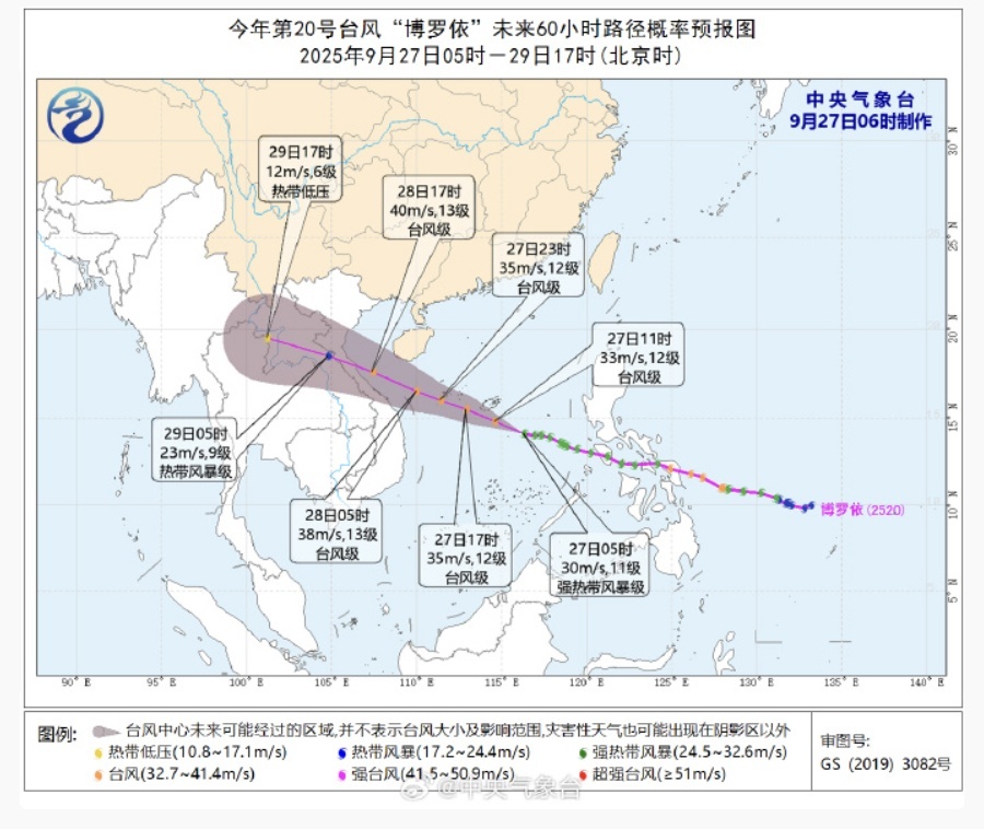 据@广东天气,受台风“博罗依”影响,9月27日夜间至29日白天,粤西海面风力加大到7~9级阵风10~11级;28日—29日,粤西市县有大雨到暴雨局部大暴雨降水过程。