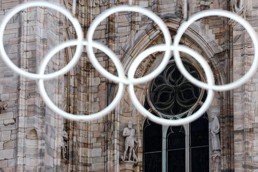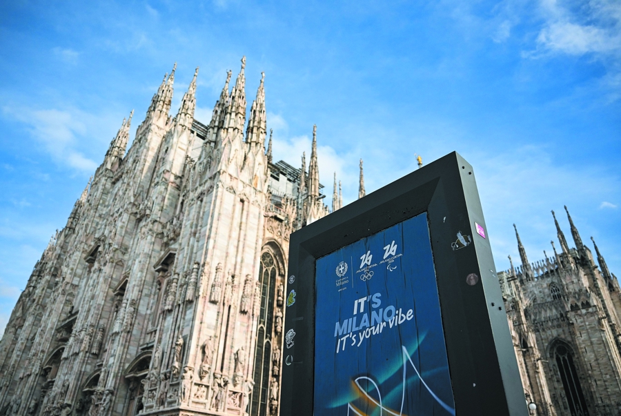 冬奥标志出现在米兰街头的各个角落